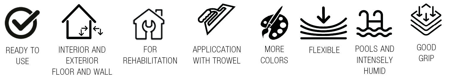 - It is used to bond medium-sized ceramic tiles and natural stone on walls and floors, both indoors and outdoors;