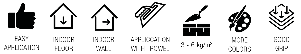 - Cementitious Adhesive for gluing high absorption and small sized ceramic tiles on interior walls and floors;