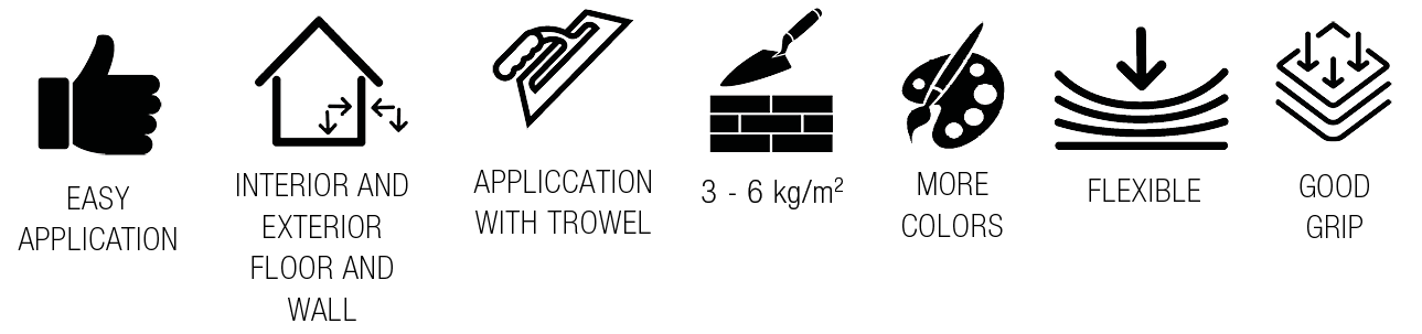 - Flexible Cementitious Adhesive for gluing small and medium sized ceramic tiles, on walls and floors, indoors and outdoors;