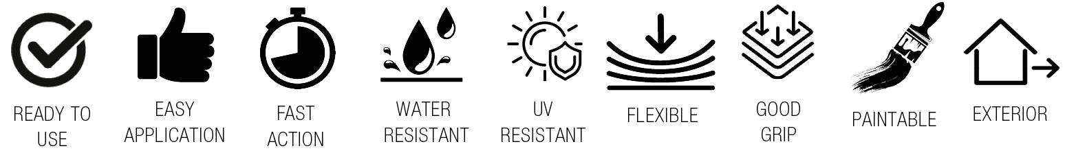 - Can be applied to: glass, wood, cork, stone, concrete, brick, PVC, metal, plasterboard, ceramic, tile, styrofoam, etc;