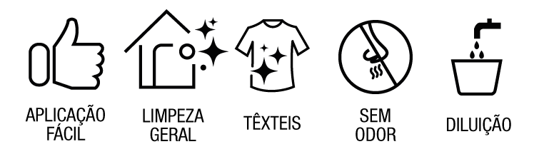 - Tem inúmeras aplicações domésticas como: dissolver gorduras, eliminar maus odores, limpar fornos, lava-louças e torneiras, para além de higienizar banheiras, lavatórios, azulejos, sanitários, entre outros.