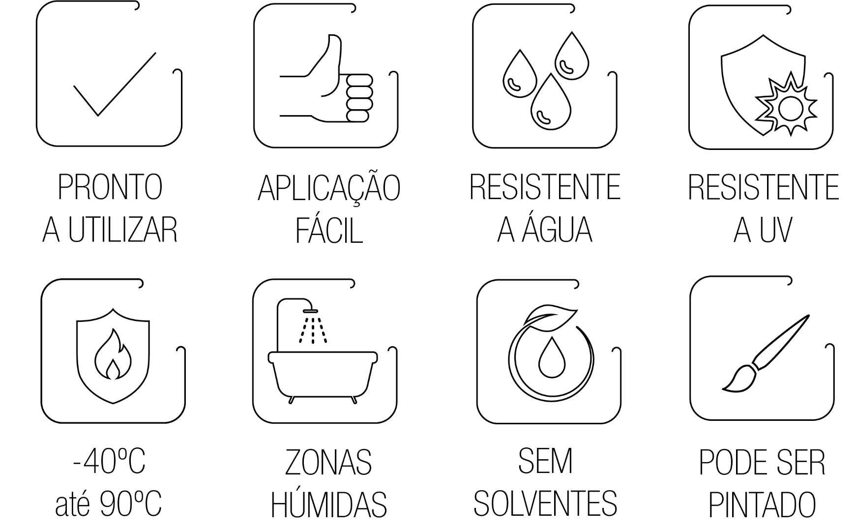 - Pode ser aplicado em praticamente todo o tipo de materiais em interior e exterior e mesmo sobre as superfícies molhadas;