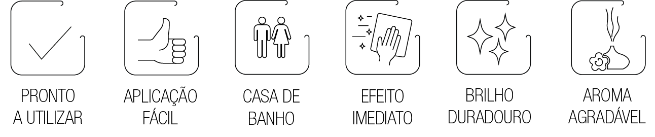 - Remove manchas de água, calcário e resíduos de sabão de toda a casa de banho;