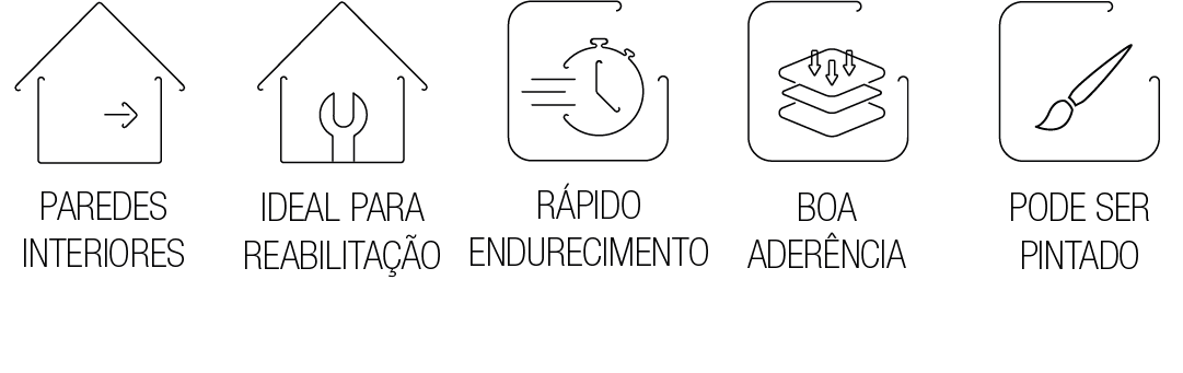 - Pode ser aplicado para estucar paredes e tetos pelo método tradicional.